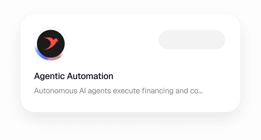 - Agentic Automation — Smart AI agents handle financing workflows end-to-end, assisting with checks and executing routine steps instantly.